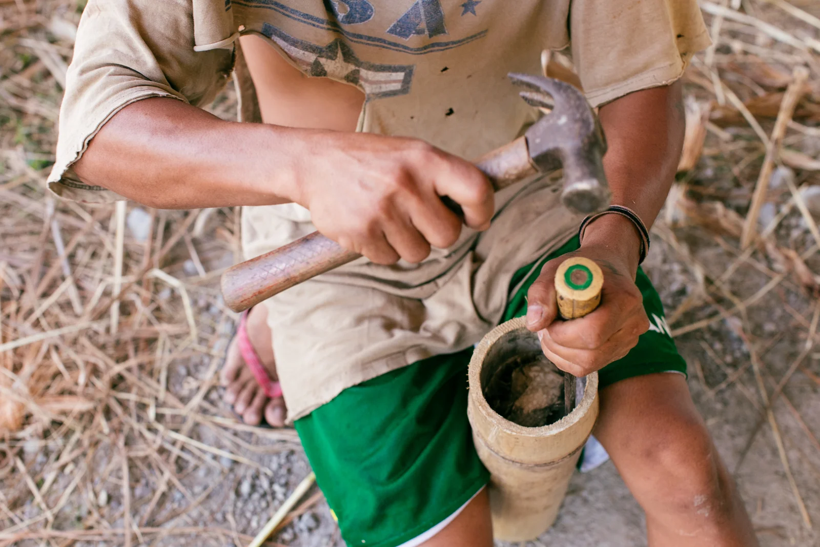 Bamboo is an incredibly versatile material: our skilled carpenters have made bamboo pegs out of bamboo slivers that we use to nail our structural supports; bamboo skins are woven for walls; cut into long strips, we have bamboo flooring; the tips of our variety of spiny bamboo make beautiful decorative railings. Every piece and section of bamboo has a purpose.